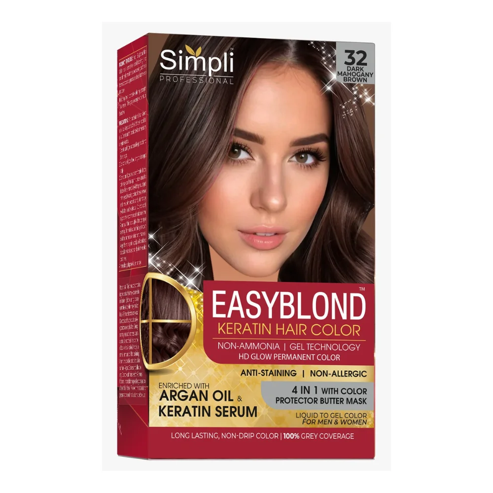 Get rich, salon-quality hair at home withSimpli EasyBlond Keratin Hair Color 32 Dark Mahogany. This advanced liquid-to-gel permanent color is designed for men and women, delivering smooth application, deep nourishment, and long-lasting dark mahogany brown results.